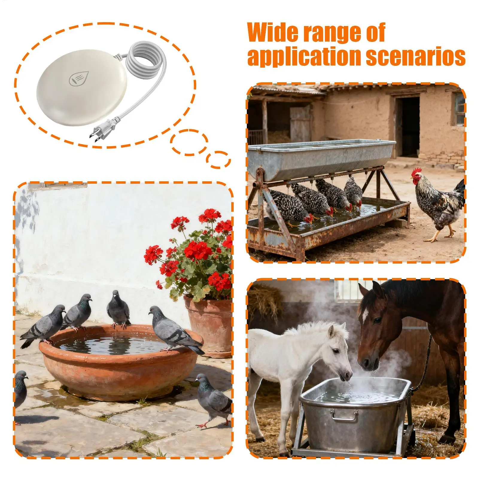 Wildlife-Friendly Heating: The Bird Bath Water Heater ensures a consistent water temperature for wildlife and livestock during winter, preventing freezing in buckets and ponds