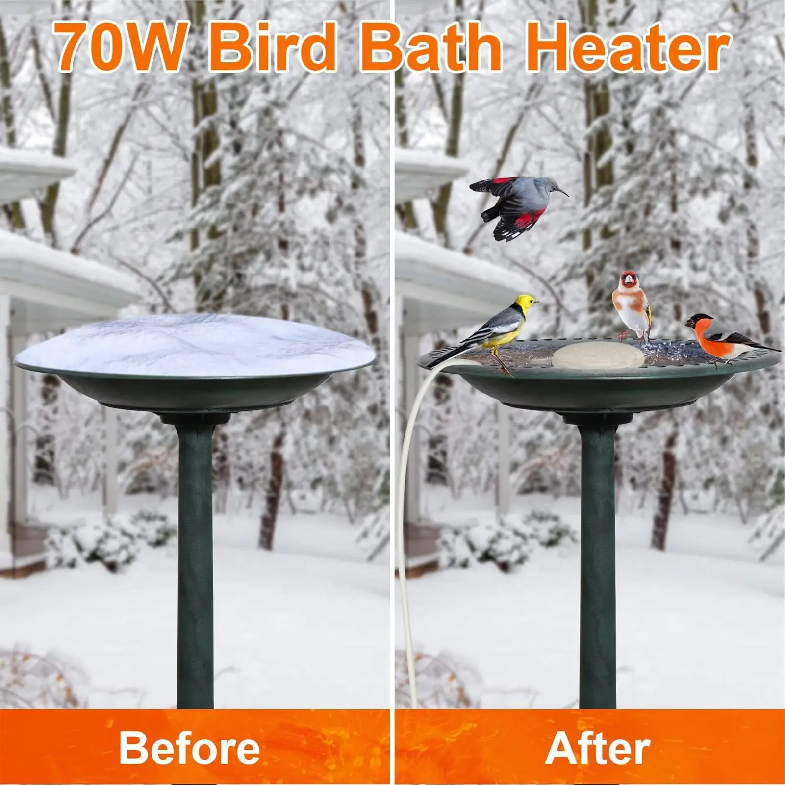 Year-Round Functionality: This bird bath heater performs well in sub-zero settings by preventing ice accumulation, ensuring birds have dependable access to clean water during winter months